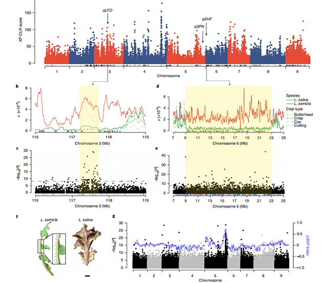 基于华大测序平台的数据,深入探究栽培生菜中与驯化性状相关的选择性清除区域,鉴定了与生菜驯化过程中的关键性状相关的特定基因组区域[3]