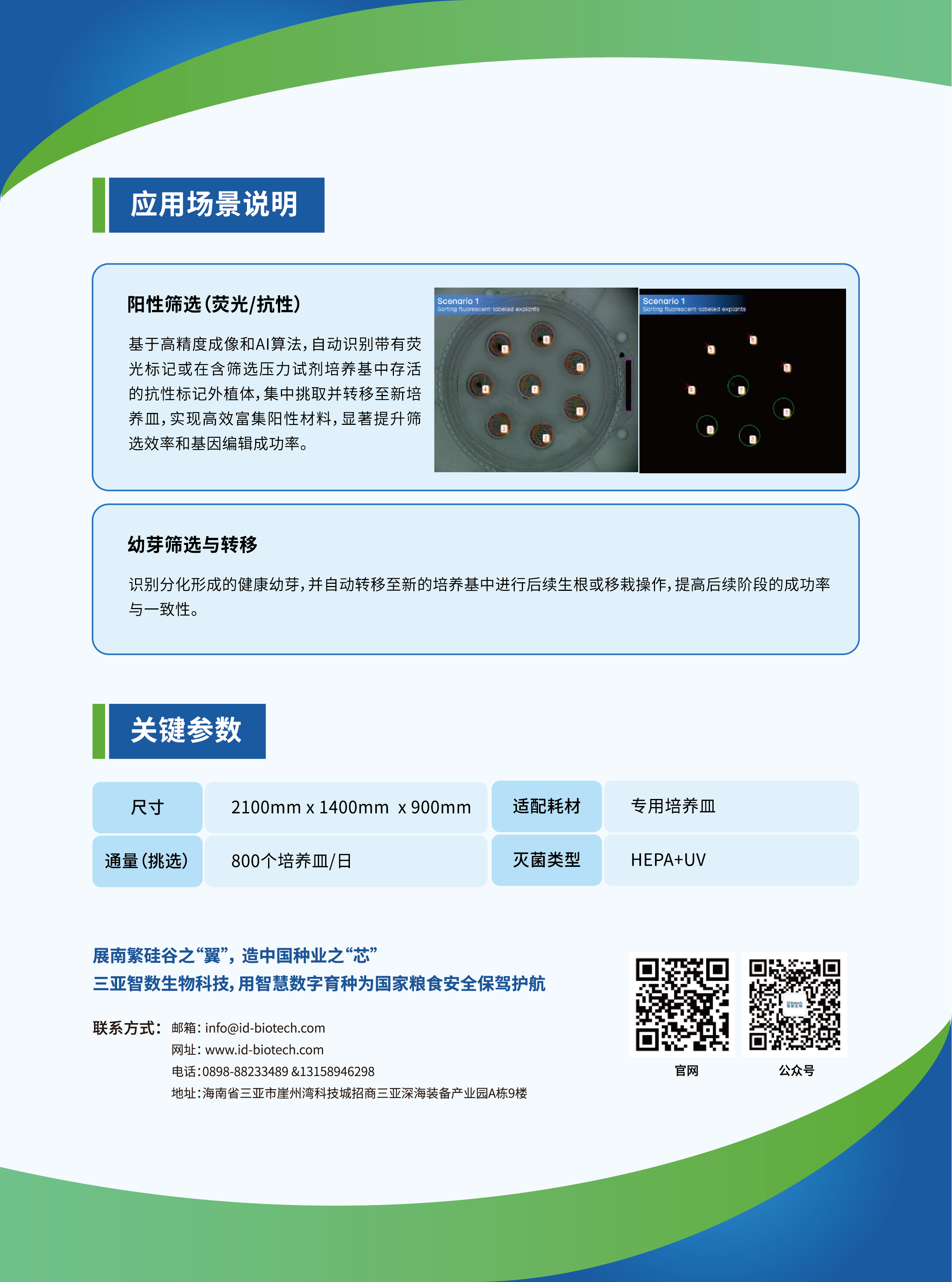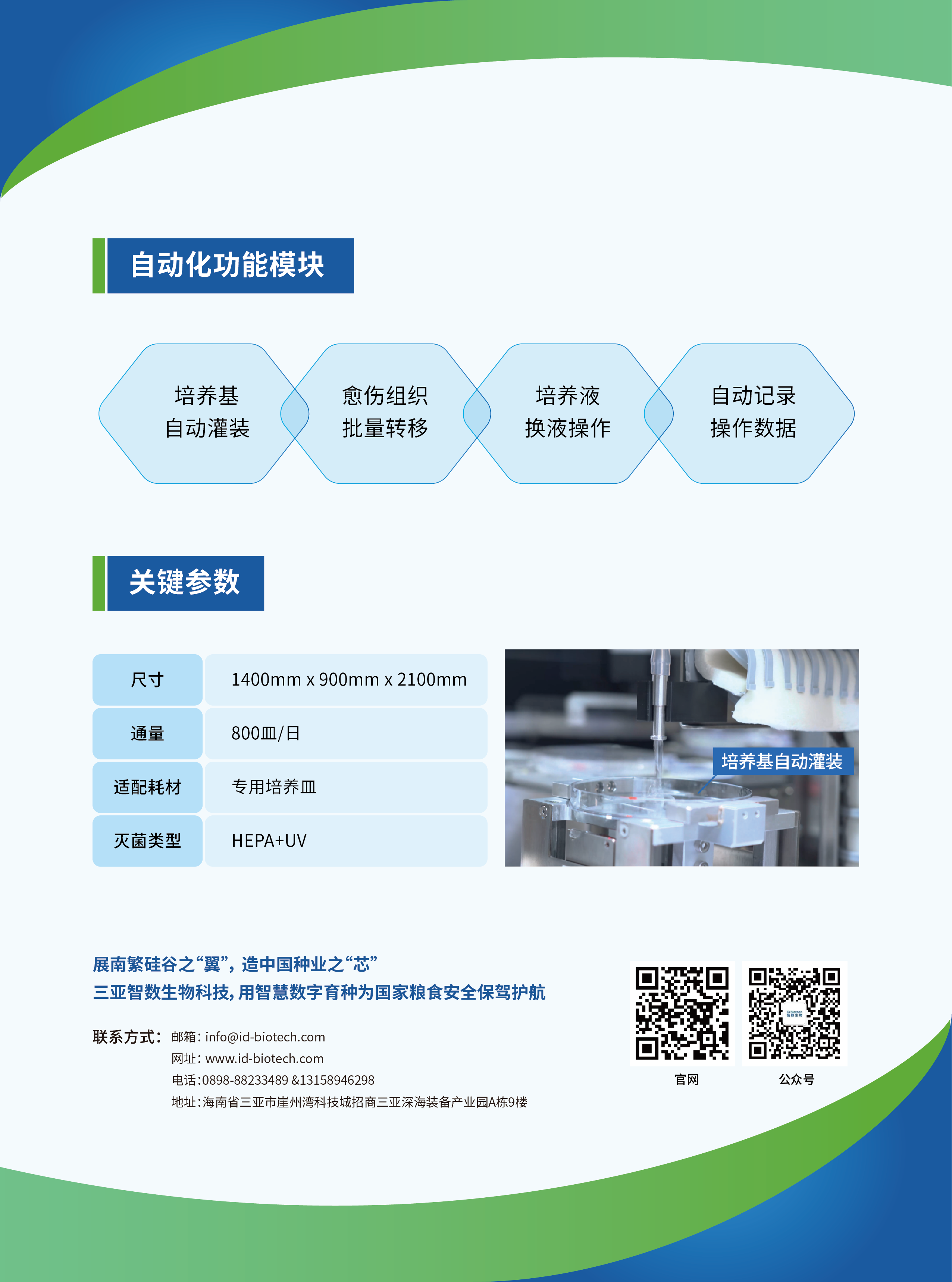 目前,在培养皿自动化转移、再生苗微量高通量鉴定方向已实现工具自主可控。该平台完全落地后总成本相较于人工作业降低40%,节省人力成本9成以上,预计年产出外植体培养基50万皿,转移外植体个数达千万级,鉴定再生植株50万株以上,不仅可服务于大规模植物突变体库创建和高通量植物编辑育种研发的需求,亦可为相关企业的生物育种提供工程化的育种支撑。