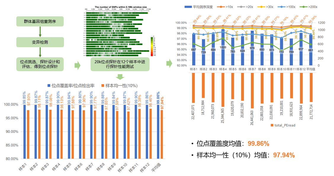 智数生物依托华大,可利用该技术根据物种、遗传背景材料、应用场景和个性化需求,定制设计技术方案,开发全基因组目标区域不同密度、任意数量标记的靶向捕获试剂盒产品,提供从基因组测序、SNP挖掘、SNP标记筛选、标记体系开发、合成和验证的一站式服务。