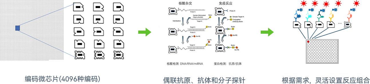 编码微芯片通过12个二进制编码位置的不同组合,能够生成多达4096种(2的12次方)独特编码。这种技术支持创建具有丰富编码形式的微芯片,为大规模检测提供可能。