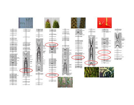 对张杂谷父本进行 de novo 测序,破译其 5 亿个碱基序列,注释得到 3 万个基因。完成了杂交谷株高,雄性不育,抗除草剂,叶色等七个重要农艺性状控制基因的定位,用于指导育种。